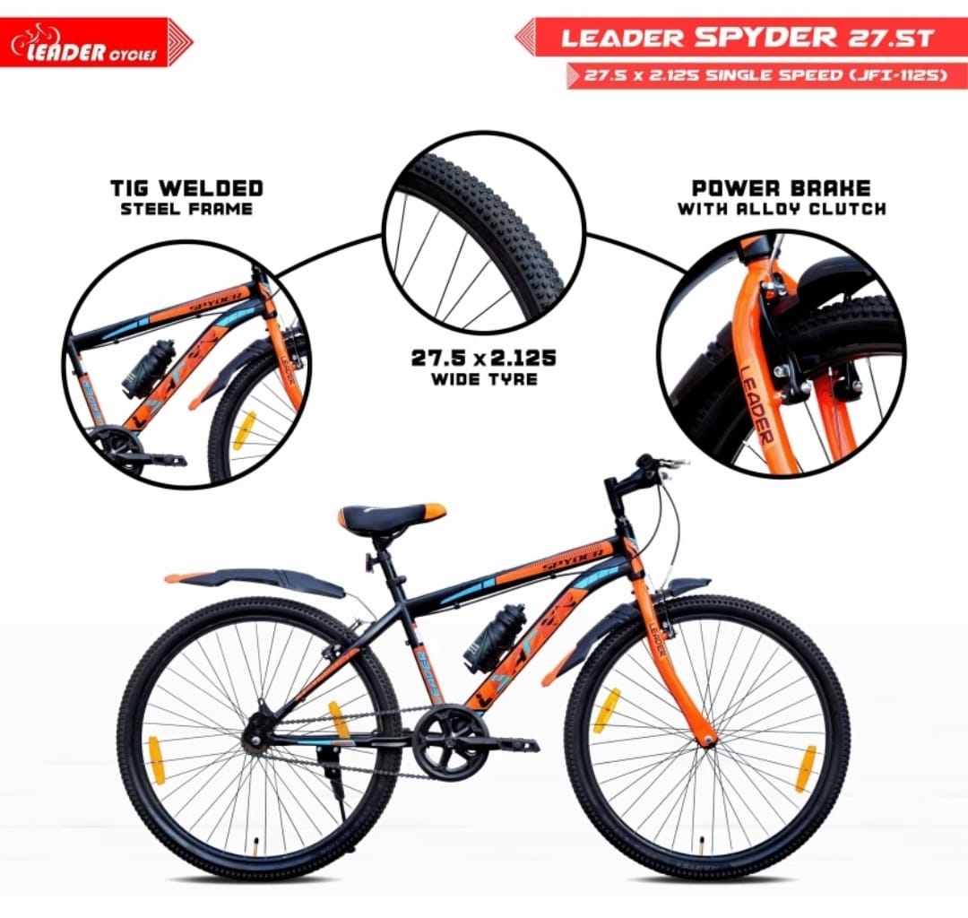 LEADER Spyder MTB Cycle/Bike with Complete Accessories 27.5 T Mountain Cycle (Single Speed, Black, Orange)
