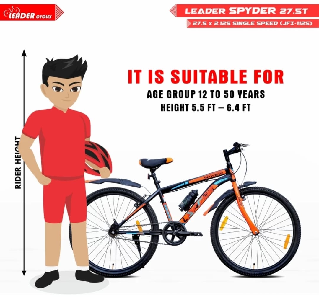 LEADER Spyder MTB Cycle/Bike with Complete Accessories 27.5 T Mountain Cycle (Single Speed, Black, Orange)